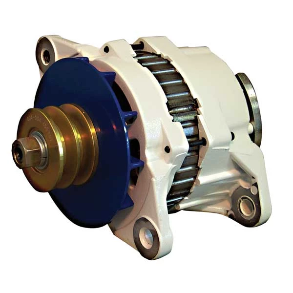 95-Series alternators feature stout J-180 saddle mounts typical of most larger marine diesel engines. Dual “V” or serpentine belts are required.